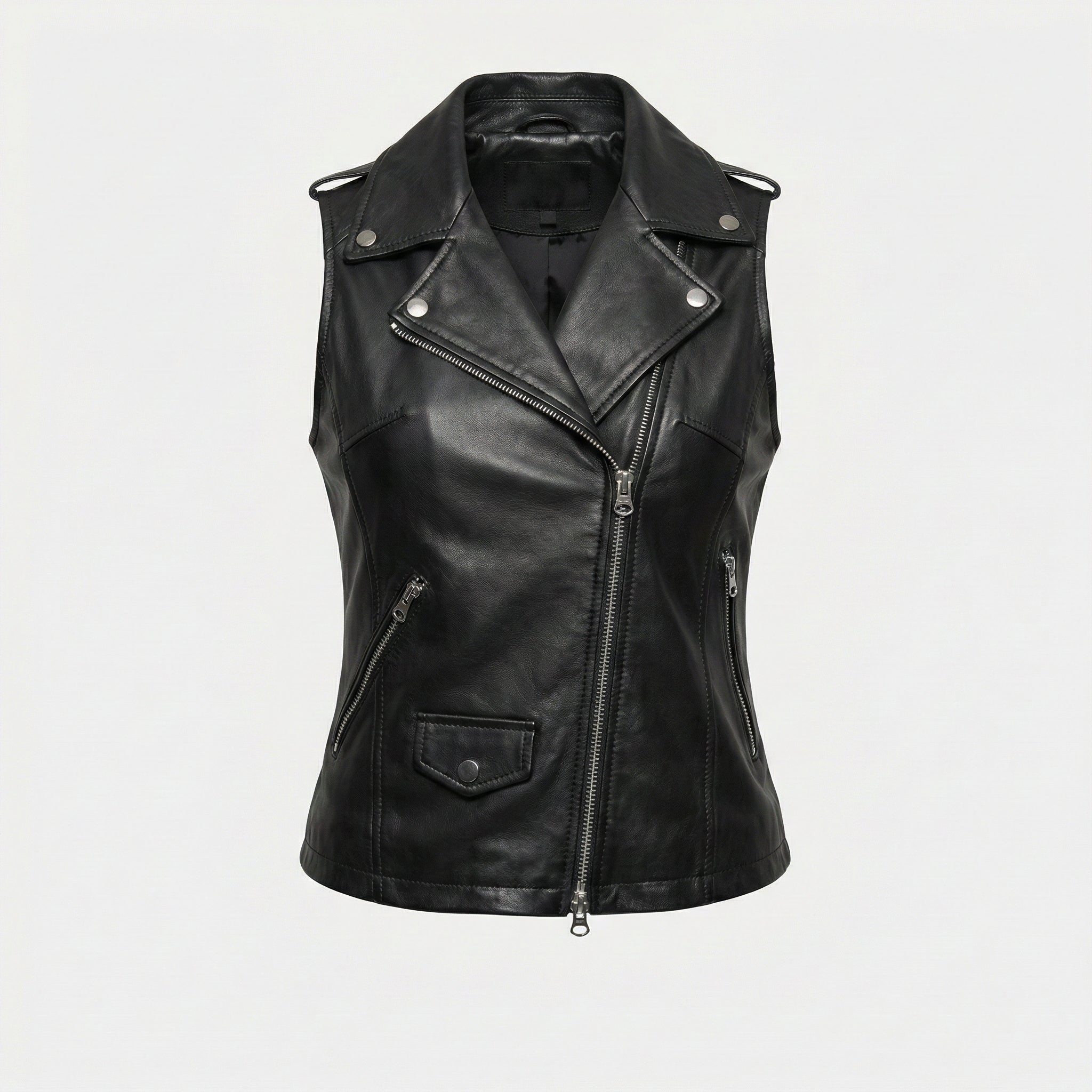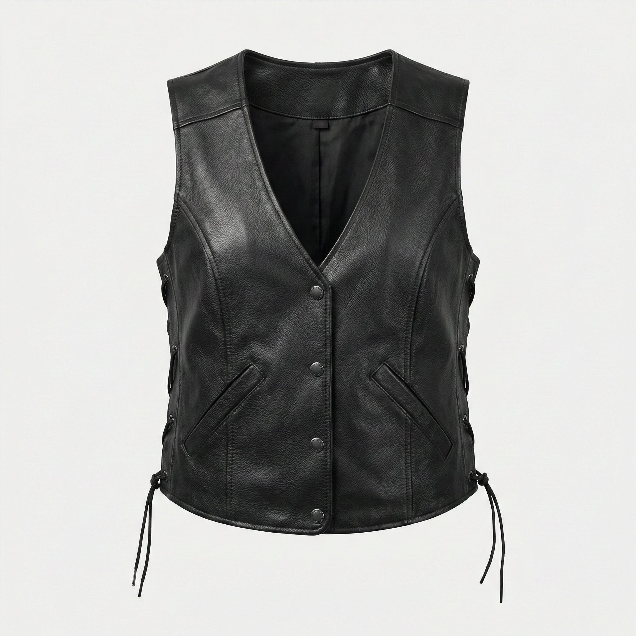 Premium women's leather vests in biker, western and tailored styles. Includes motorcycle vests with snap or zip fronts, western styles with fringe details, fitted dress vests, cropped designs, sleeveless riding vests and quilted leather vests with genuine leather construction.