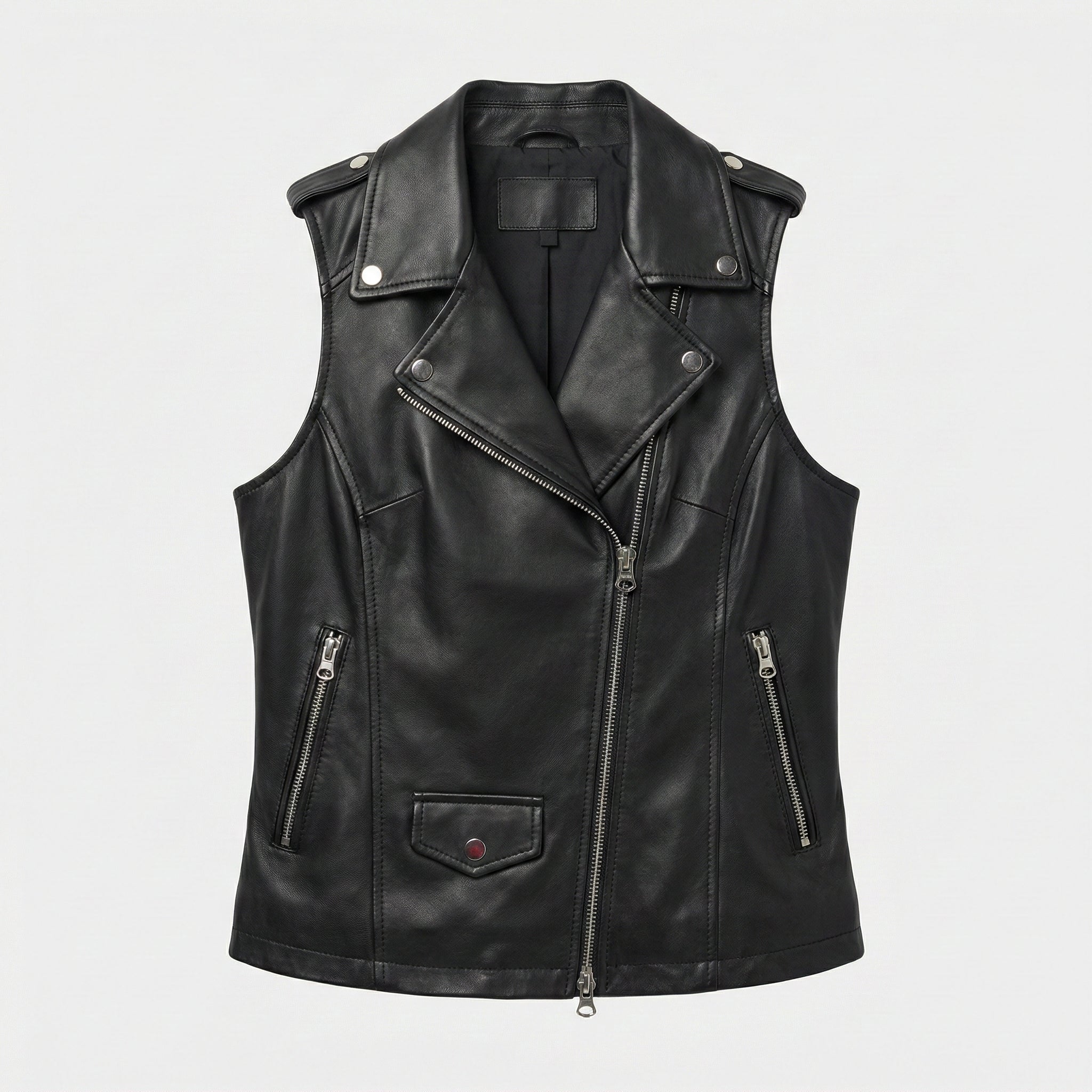 Elevate your style with the Vest Leather Jacket Women Genuine Coat Biker Sheepskin Fashion in Black. This chic black leather vest is crafted from genuine sheepskin leather, offering a perfect blend of luxury, comfort, and durability. With its biker-inspired design, this jacket is an ideal choice for bold women who love to stand out. Whether you're looking for a statement piece for a night out or a sleek layer for everyday wear, this versatile vest has you covered.