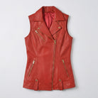 Add a vibrant pop of color to your wardrobe with the Vest Leather Jacket Women Genuine Coat Biker Sheepskin Fashion in Red. Crafted from genuine sheepskin leather, this bold red leather vest combines edgy biker aesthetics with luxurious comfort. Designed for women who love to make a statement, this vest offers a striking and stylish look that can easily be paired with a variety of outfits. Whether you're going out for a night on the town or simply want to elevate your casual look, this red leather vest is a must-have addition to your collection.