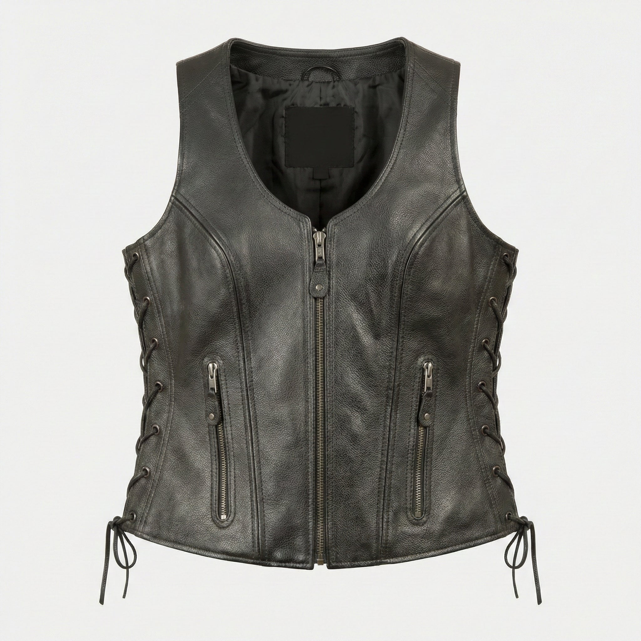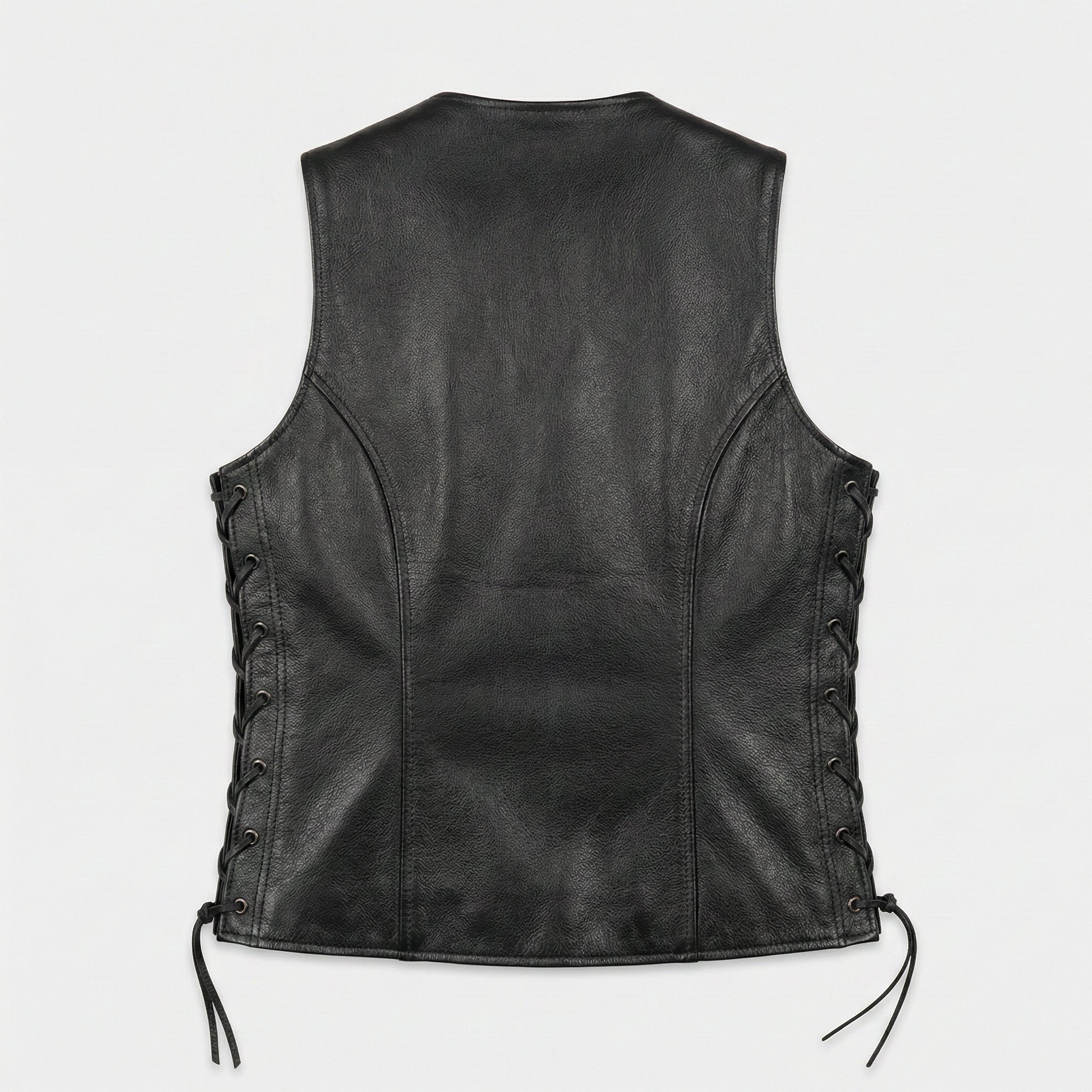 Versatile Styling: Perfect for pairing with dresses, t-shirts, or even casual denim, the black leather vest offers endless styling possibilities.