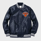Whether you're heading to Madison Square Garden or watching from home, this genuine sheep leather varsity jacket delivers unmatched quality and unmistakable New York Knicks style. The all-leather construction creates a premium heritage look that elevates any outfit, while the embroidered team details showcase your dedication to the Knicks legacy.