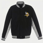 Stay warm and stylish while supporting the Minnesota Vikings with this Black & Gray Wool Varsity Jacket — the ideal choice for any NFL fan who wants to show off their team pride with comfort and flair!