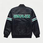 Philadelphia Eagles Black Satin Varsity Jacket – Premium NFL Letterman with Full-Snap Closure