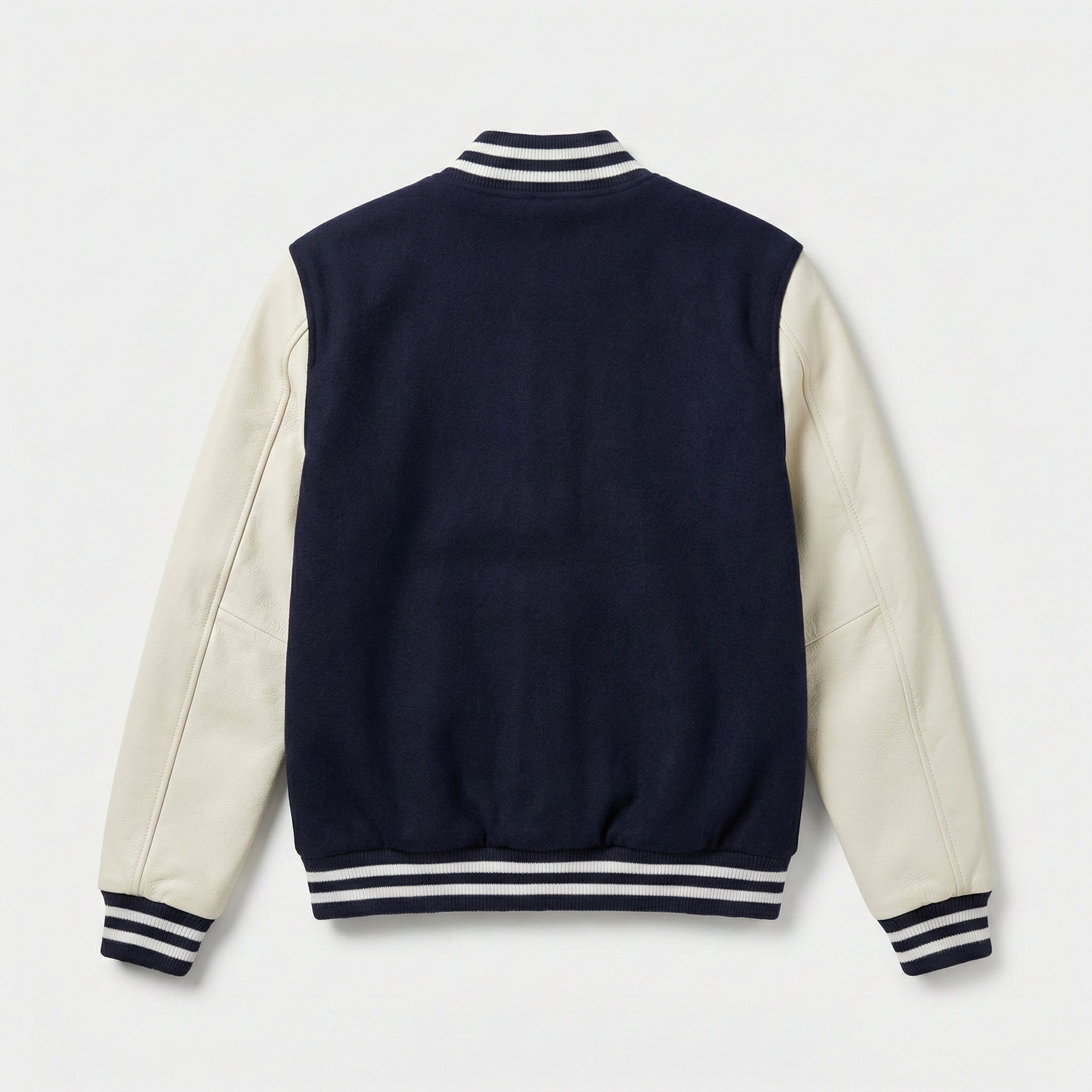 - Genuine Leather Sleeves: Classic leather sleeves for authentic varsity style