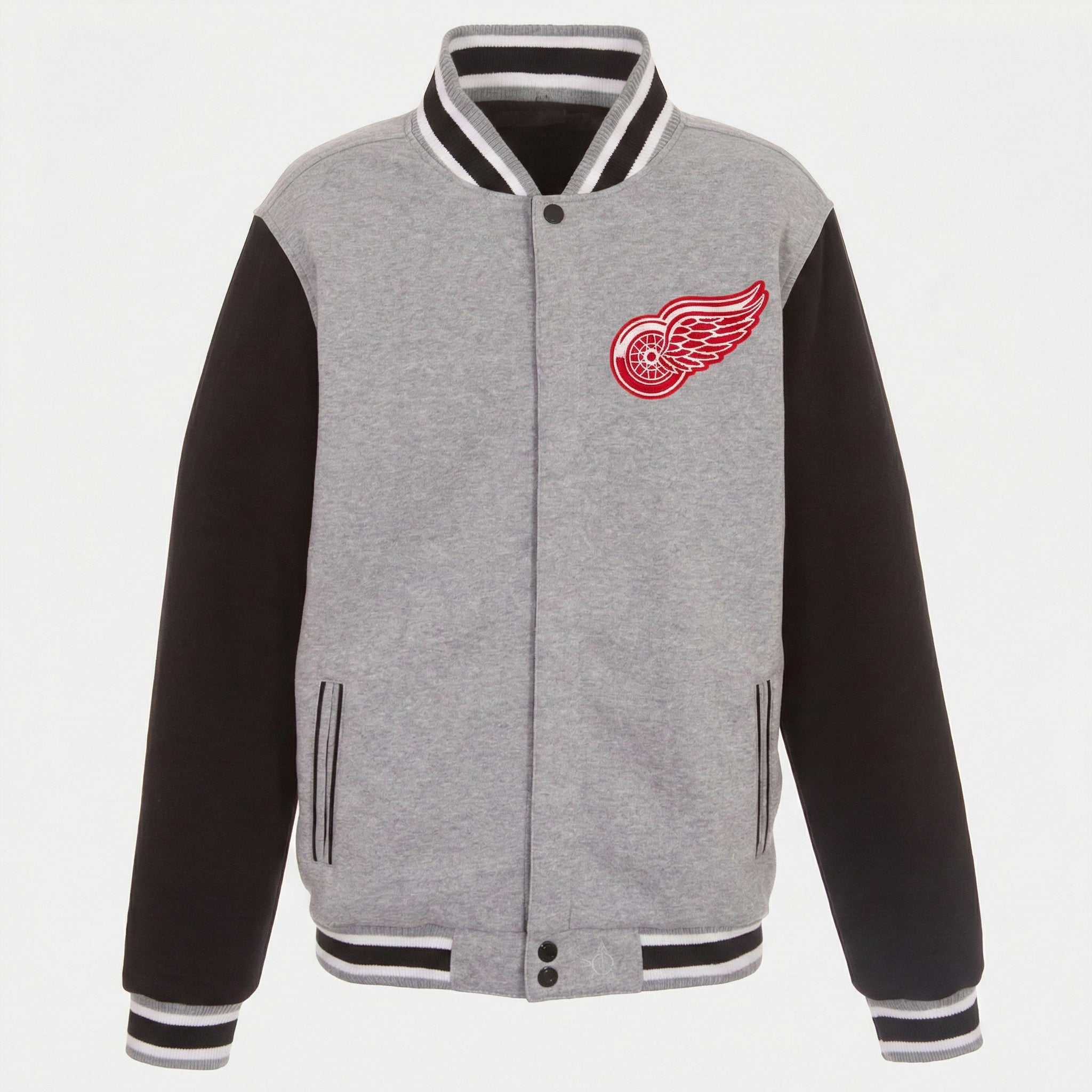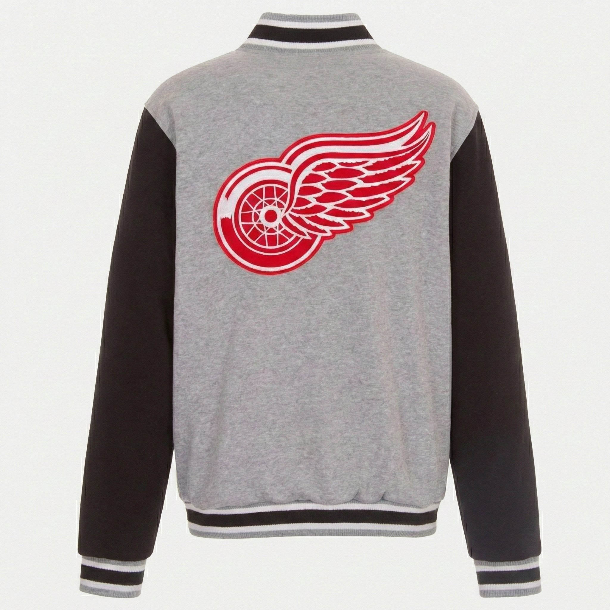 Celebrate your Detroit Red Wings pride in premium style with this iconic gray and black varsity wool jacket. Crafted for true fans who demand both authenticity and quality, this full-snap jacket combines classic sportswear heritage with modern comfort.