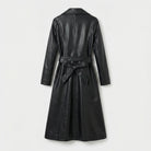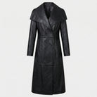 Black Leather Trench Coat Women's Genuine Lambskin Winter Long Overcoat Jacket