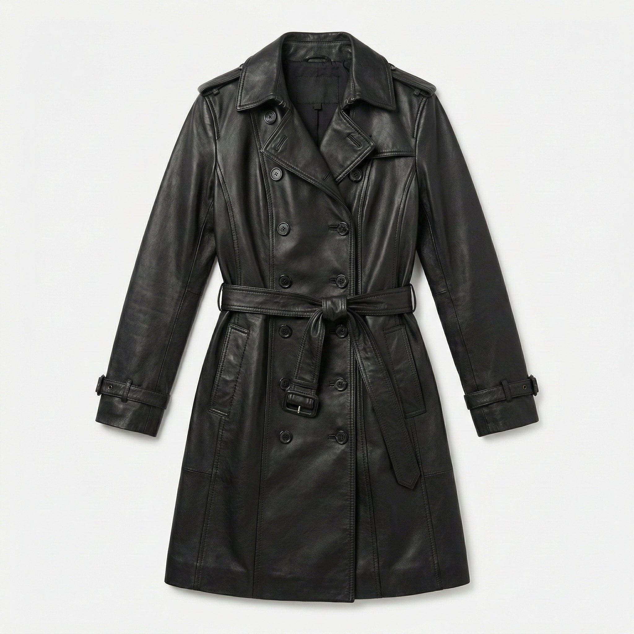 100% Genuine Lambskin Leather: Made from soft, premium lambskin leather, this coat provides a luxurious feel with long-lasting durability.