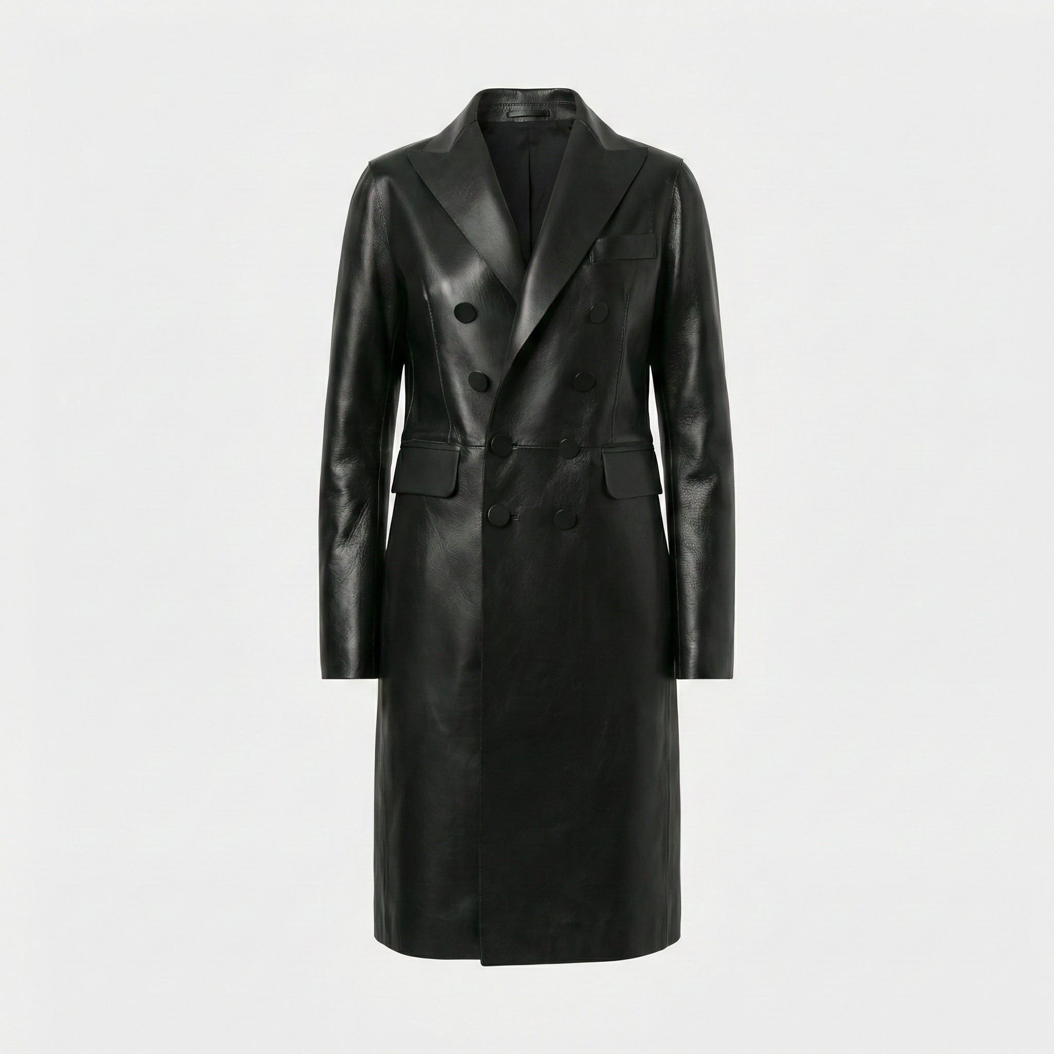 Genuine Lambskin Leather: Made from high-quality lambskin leather, this coat offers a soft, smooth texture with exceptional durability, ensuring a luxurious feel.