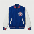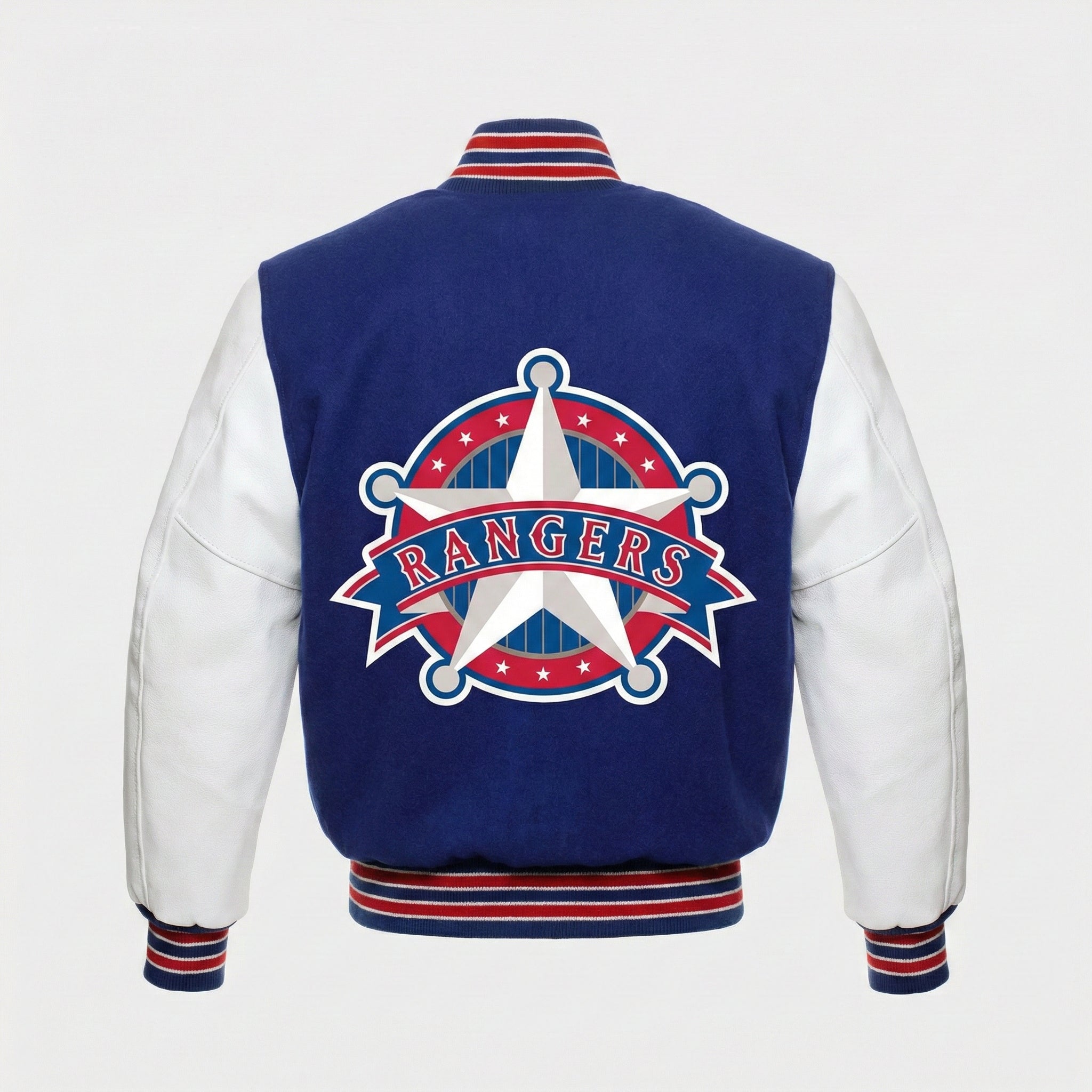 Texas Rangers Letterman Varsity Jacket - Blue & White with Leather Sleeves