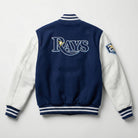 Tampa Bay Rays Blue and White Varsity Jacket with Leather Sleeves - MLB