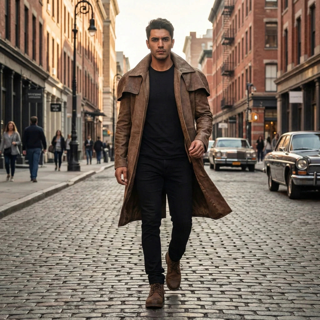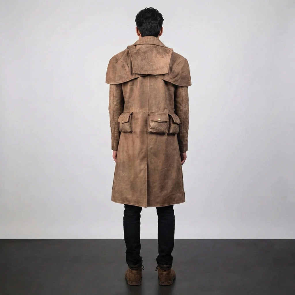 Invest in timeless style. This Army Brown Leather Duster Trench Coat is more than outerwear—it's a legacy piece that gets better with every wear.