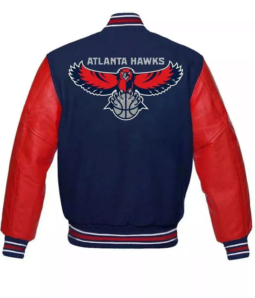 Showcase your Atlanta Hawks loyalty with timeless style in this Atlanta Hawks Blue and Red Varsity Jacket featuring premium wool body and genuine leather sleeves.