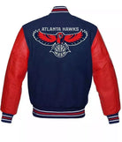 Atlanta Hawks Blue and Red Varsity Jacket With Genuine Leather Sleeves - NBA