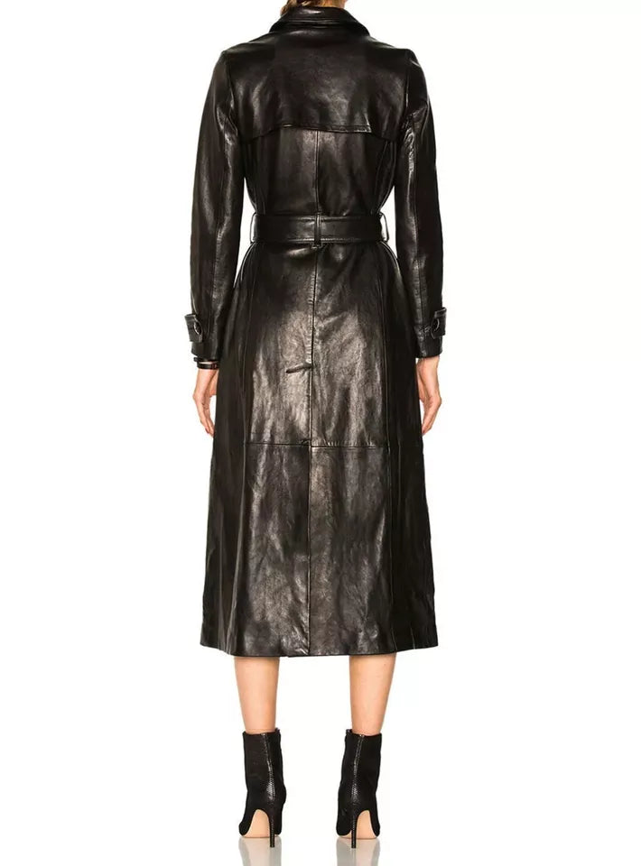 Black Leather Trench Coat For Women's Genuine Soft Lambskin Long Overcoat Jacket