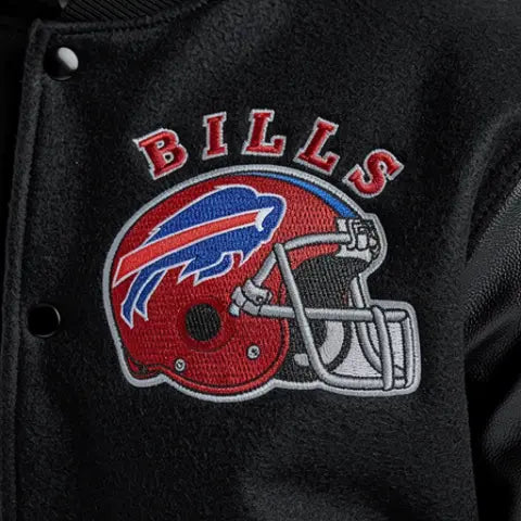 90’s Style Buffalo Bills Letterman Varsity Jacket with Leather Sleeves