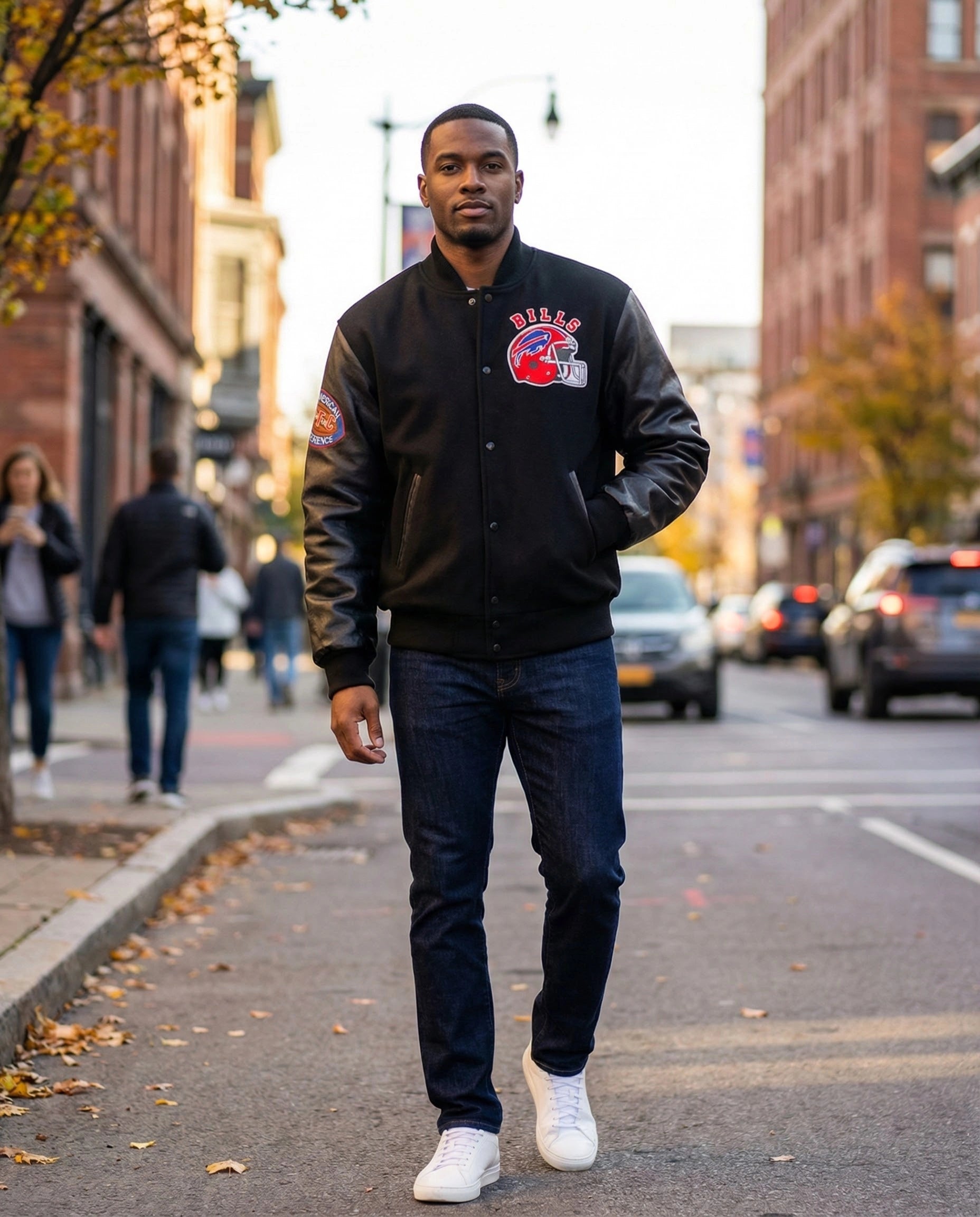 This isn't just a jacket, it's a statement piece that bridges decades of Bills pride. Whether you're heading to the stadium, meeting friends, or building your vintage sportswear collection, this letterman jacket delivers authentic 90s energy with the quality to last for years.