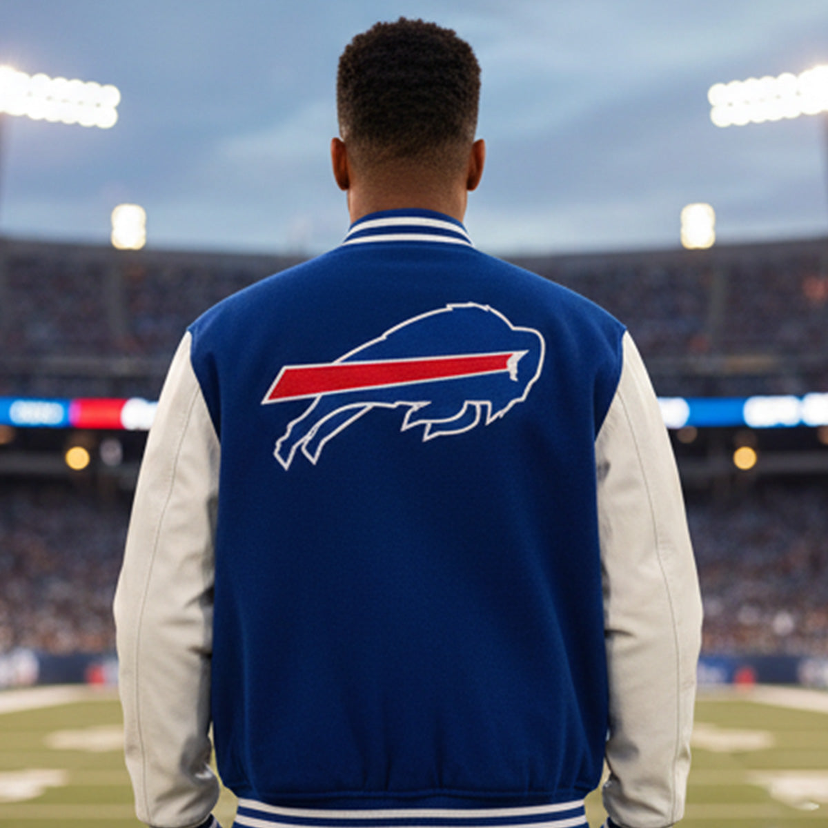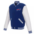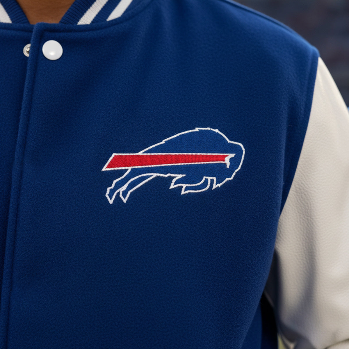 Buffalo Bills Letterman Varsity Jacket with Leather Sleeves Blue & White - NFL