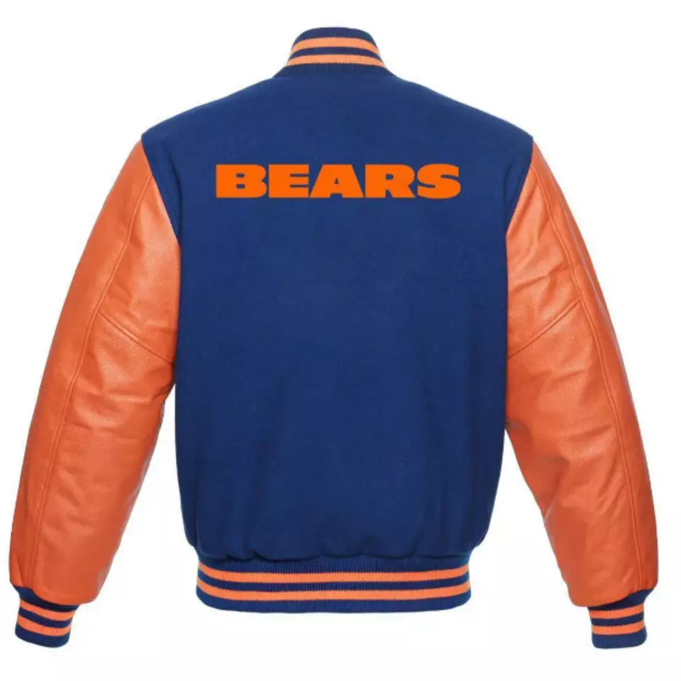 Chicago Bears Letterman Varsity Jacket Wool with Genuine Leather Sleeves - NFL