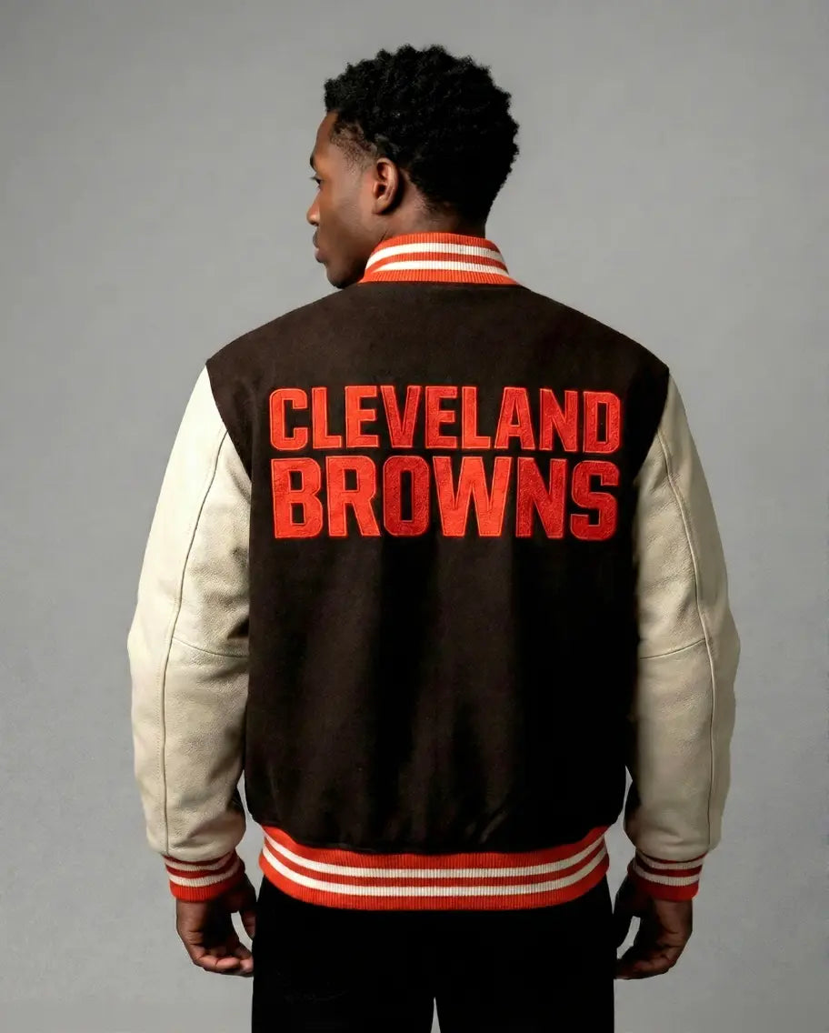 Cleveland Browns White & Brown Letterman Varsity Jacket – NFL Fan Gear