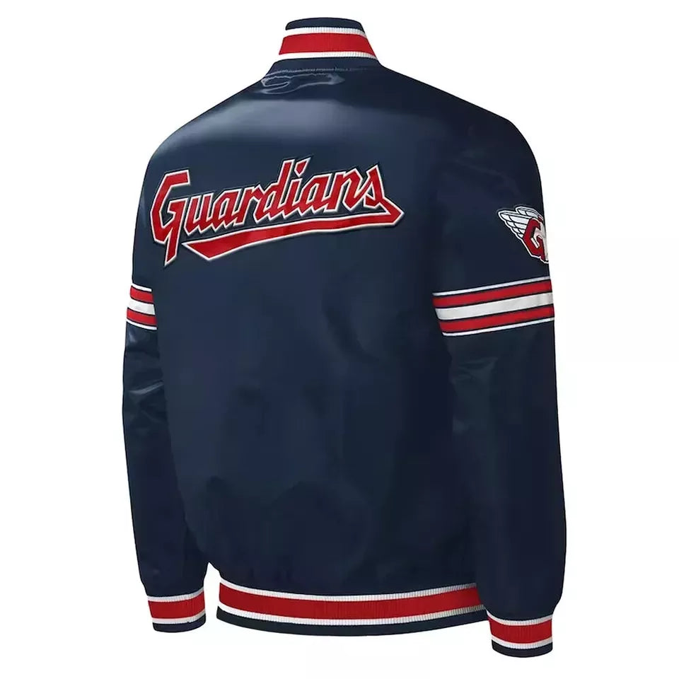 Cleveland Guardians Navy Satin Letterman Varsity Jacket