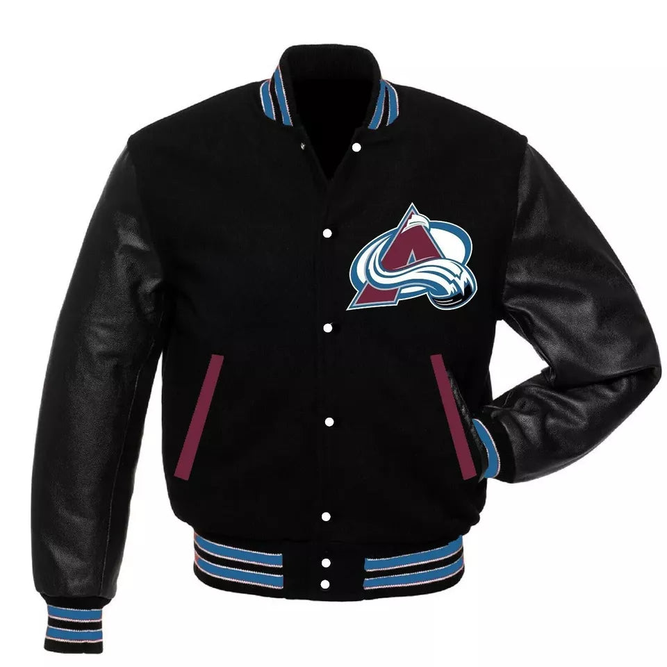 Colorado Avalanche Black Letterman Varsity Jacket – Genuine Leather Sleeves