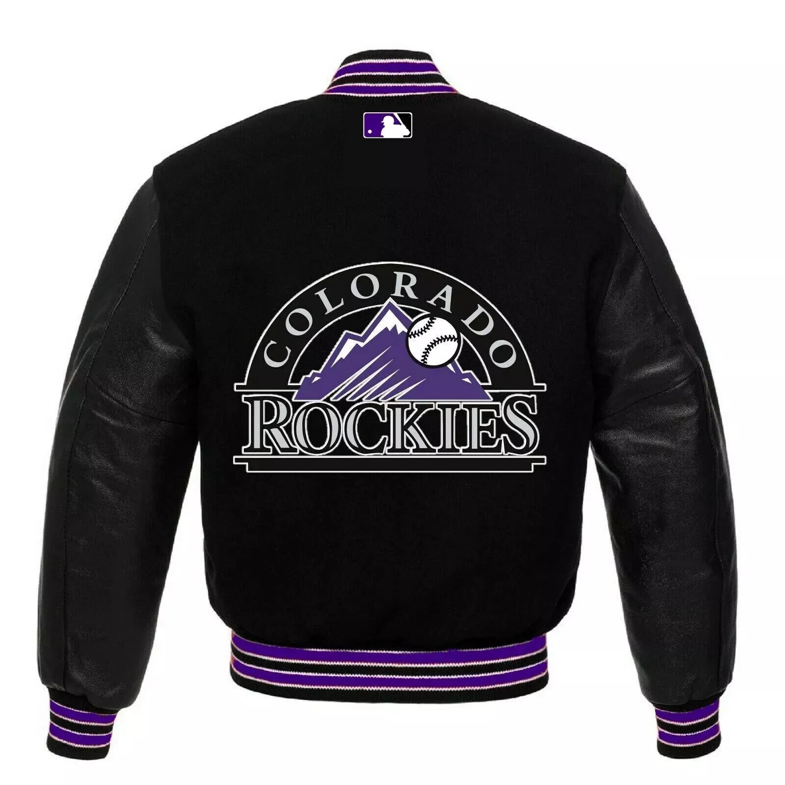 Colorado Rockies Black Wool Varsity Jacket with Leather Sleeves – MLB Fan Gear