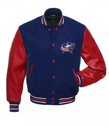 Columbus Blue Jackets Lettermen Varsity Jacket With Genuine Leather Sleeves
