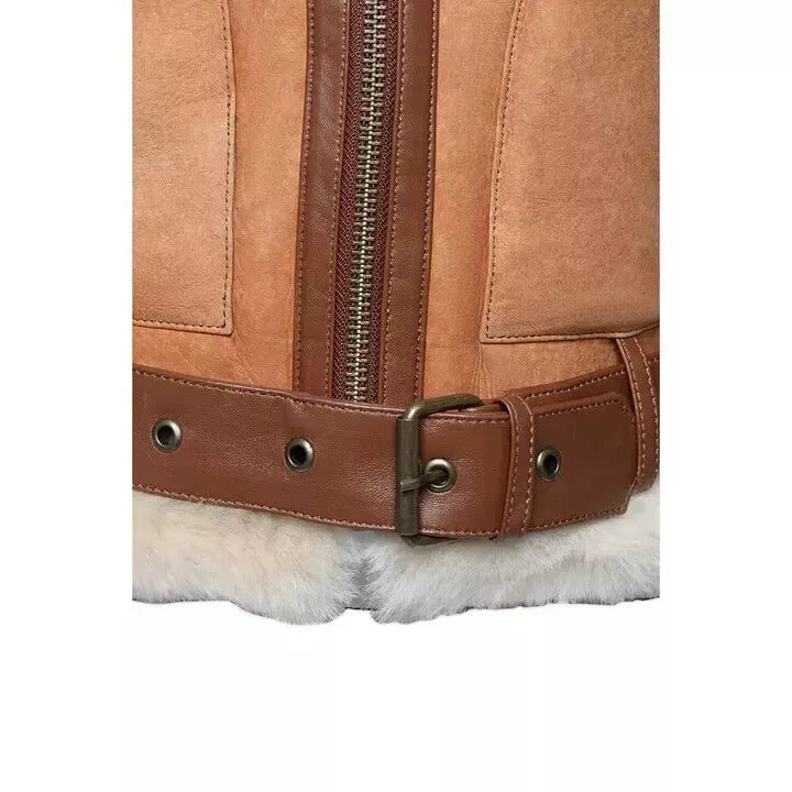 Double Collar Design: The double collar with shearling lining enhances both the warmth and the overall style of the jacket, offering a sophisticated and cozy look.