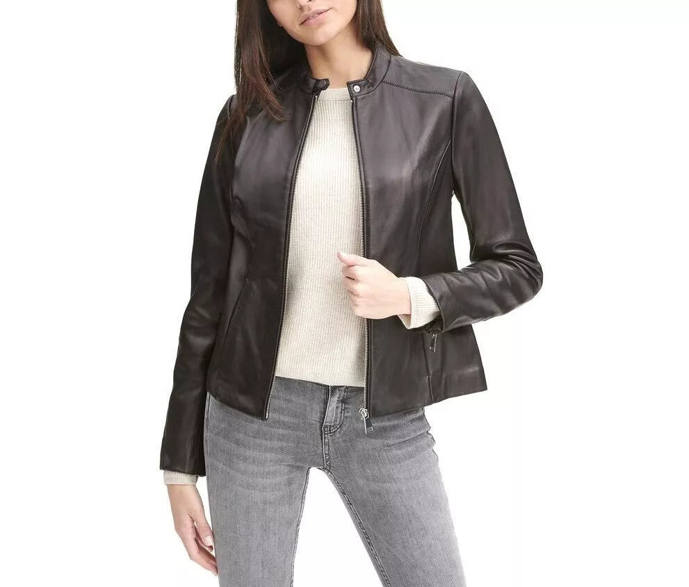 Leather Jacket Women Biker Motorcycle Women Soft Fit Size Real Black