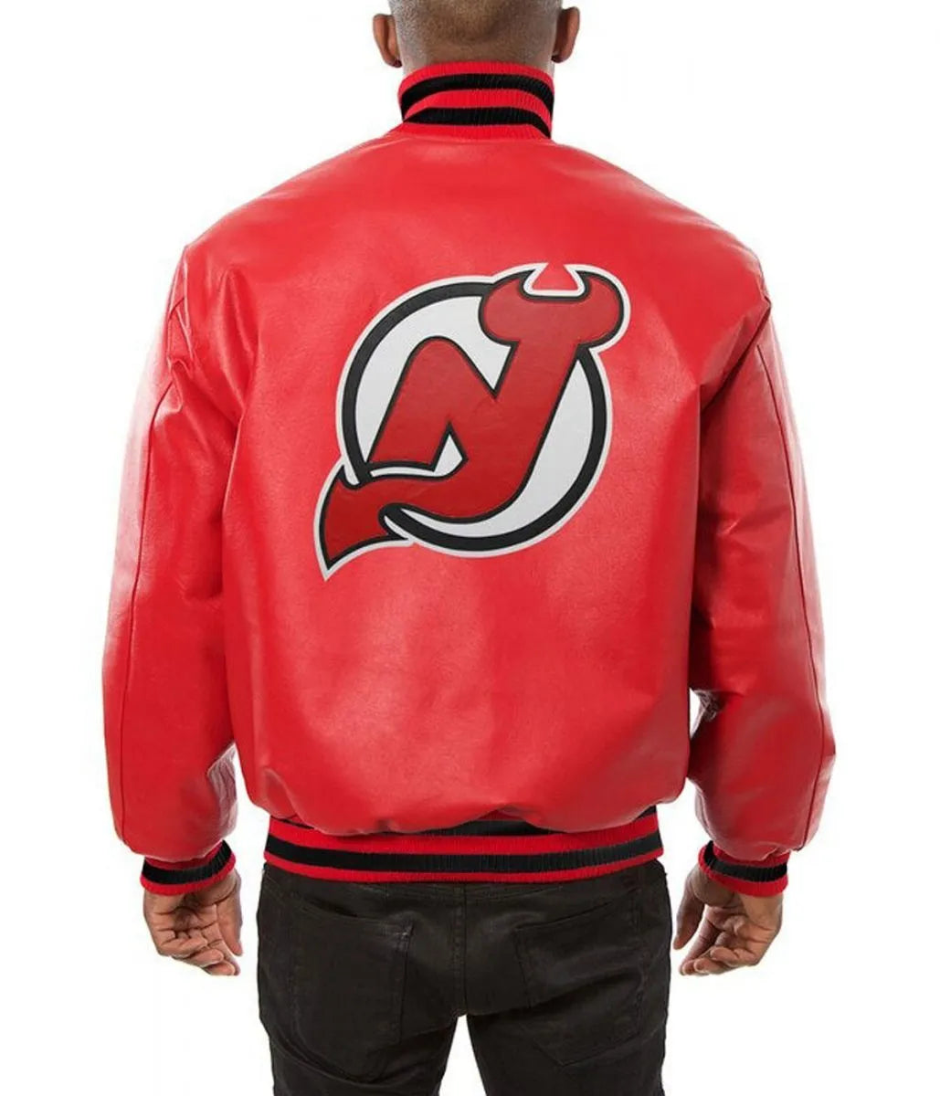 Unleash your Devils pride with this bold red leather bomber jacket designed for the true NHL fan. Featuring a sleek athletic cut and standout New Jersey Devils branding, this jacket is a statement piece that blends sporty energy with luxury leather comfort.