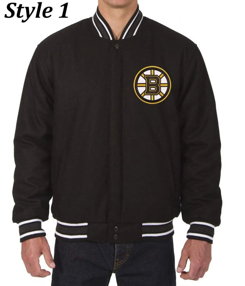 Men Boston Bruins Black Wool Varsity Jacket - NHL