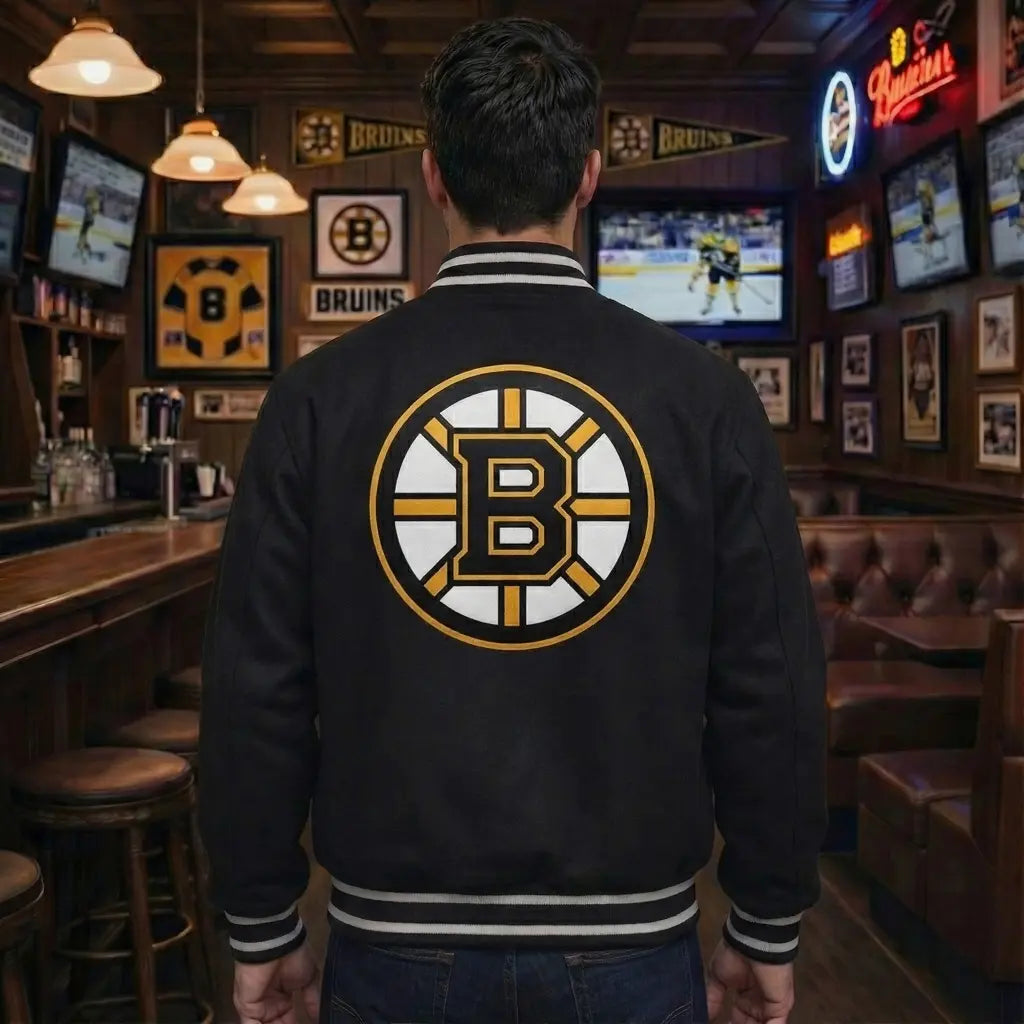 Celebrate your Boston Bruins pride with this authentic NHL varsity jacket that combines timeless heritage styling with premium craftsmanship. Designed for true fans who demand quality and authenticity.