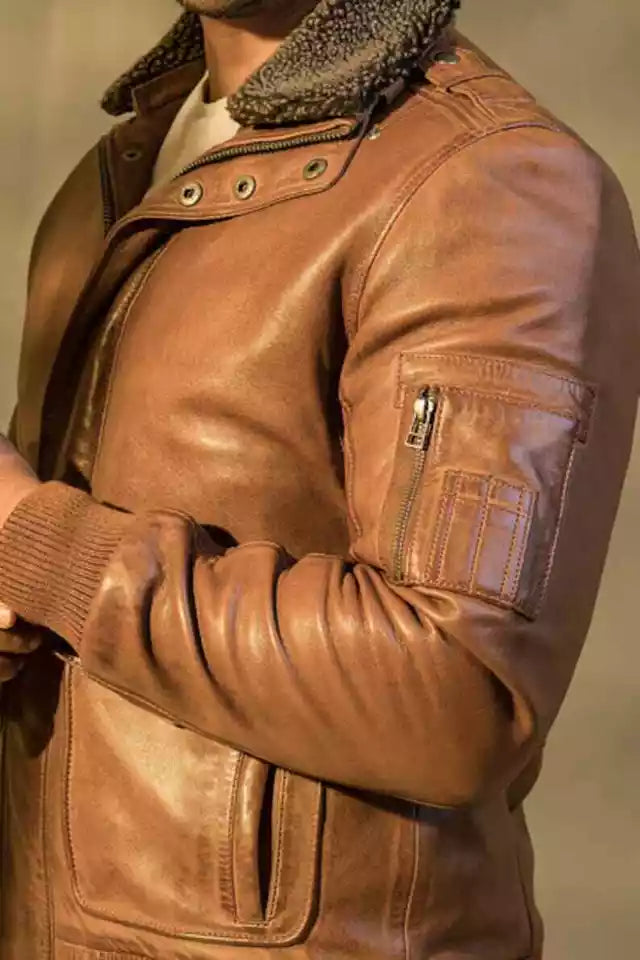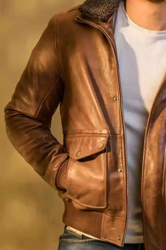 The Men’s Brown Custom Bomber Leather Jacket blends classic biker style with modern luxury. Made from premium real lambskin leather, this jacket features a stylish fur collar for added warmth and flair. Perfect for motorcycle rides or everyday wear, it offers comfort, durability, and standout design.