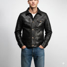 The Men's Distressed Trucker Cowhide Leather Cafe Racer Motorcycle Coat combines rugged style with luxury craftsmanship. Made from premium tanned cowhide leather, this jacket offers a durable, vintage look, ideal for bikers and fashion-forward individuals. Its distressed finish adds a bold, timeless touch, perfect for both the road and casual wear.