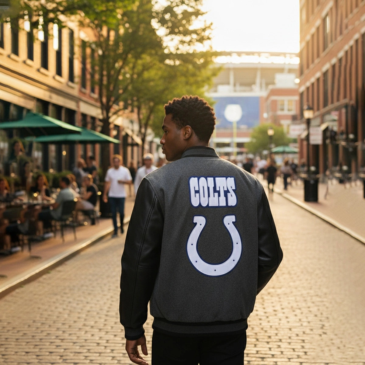 Crafted with meticulous attention to detail, this varsity jacket combines the durability of genuine leather with the comfort of premium wool. Whether you're at Lucas Oil Stadium or watching from home, you'll feel the quality with every wear.