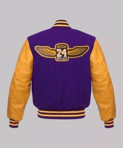 Crafted from premium wool with leather sleeves, this jacket offers a perfect blend of durability and comfort. The bold blue and yellow colors, along with the embroidered Lakers logo, ensure you stand out as a true fan. The snap-front closure, ribbed cuffs, and collar add an extra touch of style, while providing a comfortable fit for all-day wear.