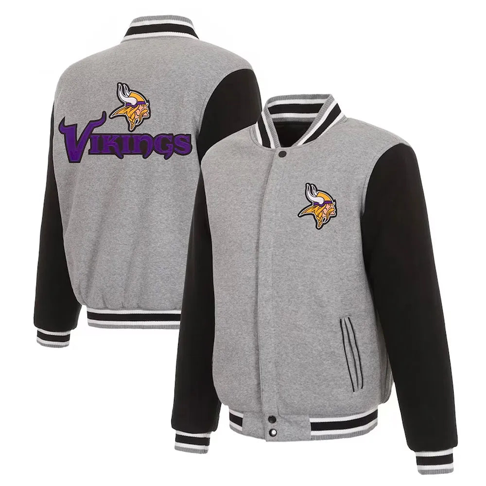 Men Minnesota Vikings Gray and Black Varsity Wool Jacket - NFL