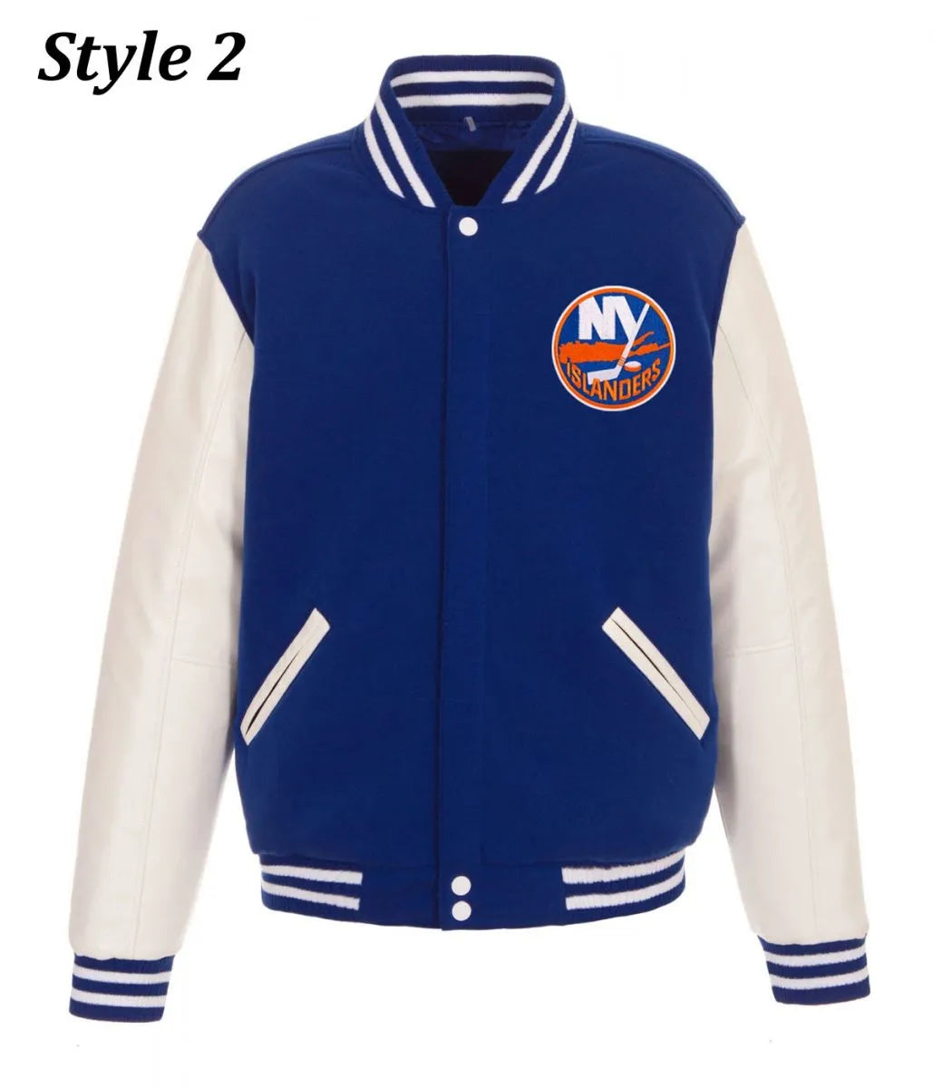 Men NY Islanders Blue and White Style 2 Letterman Jacket - NHL