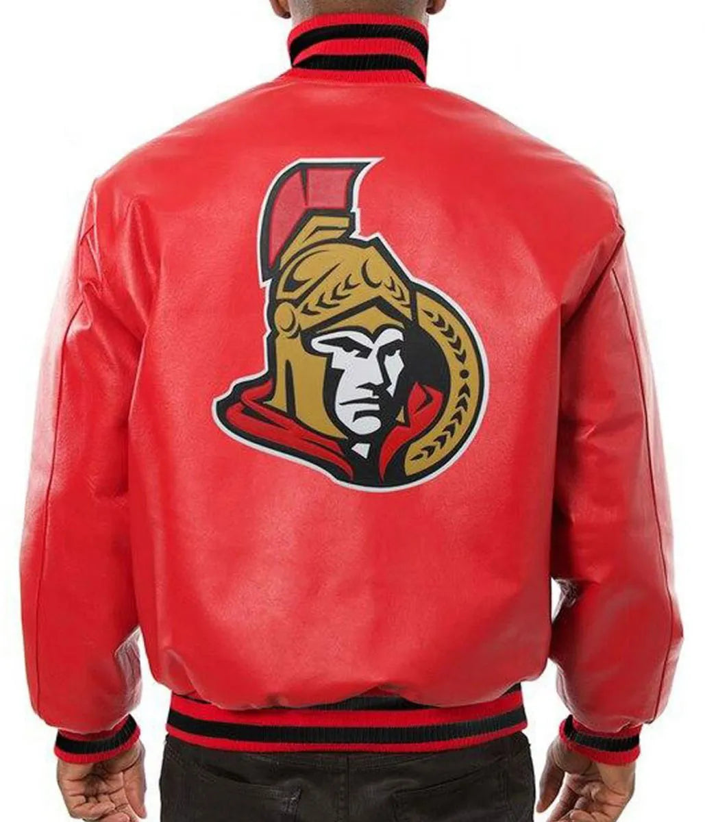 Show off your team spirit with the Men Ottawa Senators Varsity Leather Red Jacket. Featuring a bold red leather design, this jacket combines high-quality craftsmanship with the iconic Ottawa Senators logo. Perfect for chilly game nights or casual outings, this jacket offers both comfort and style while displaying your love for the Senators.