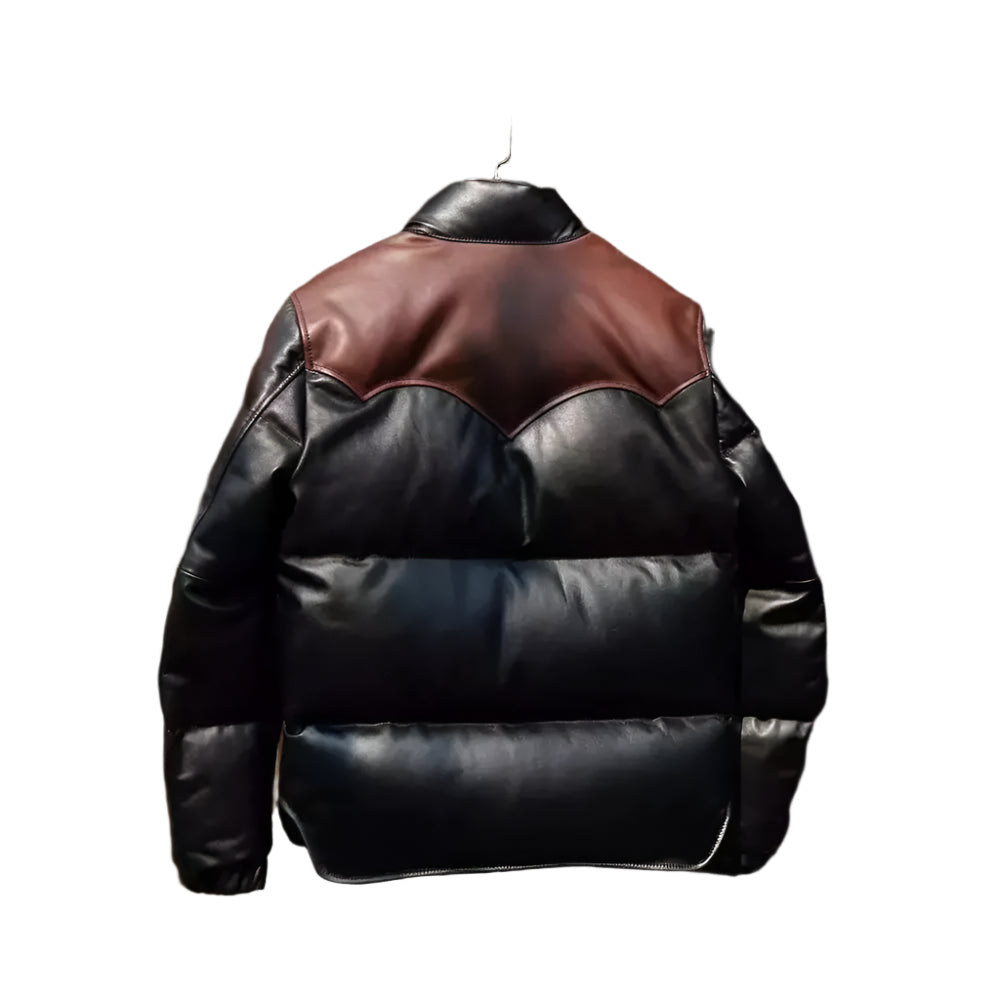 The Men’s Puffer Jacket Real Lambskin Leather Quilted Bomber Jacket in dual colors is a versatile and stylish outerwear piece. Whether you're braving the cold or simply want to add a statement piece to your wardrobe, this jacket combines the elegance of lambskin leather with the practicality of a quilted puffer design.