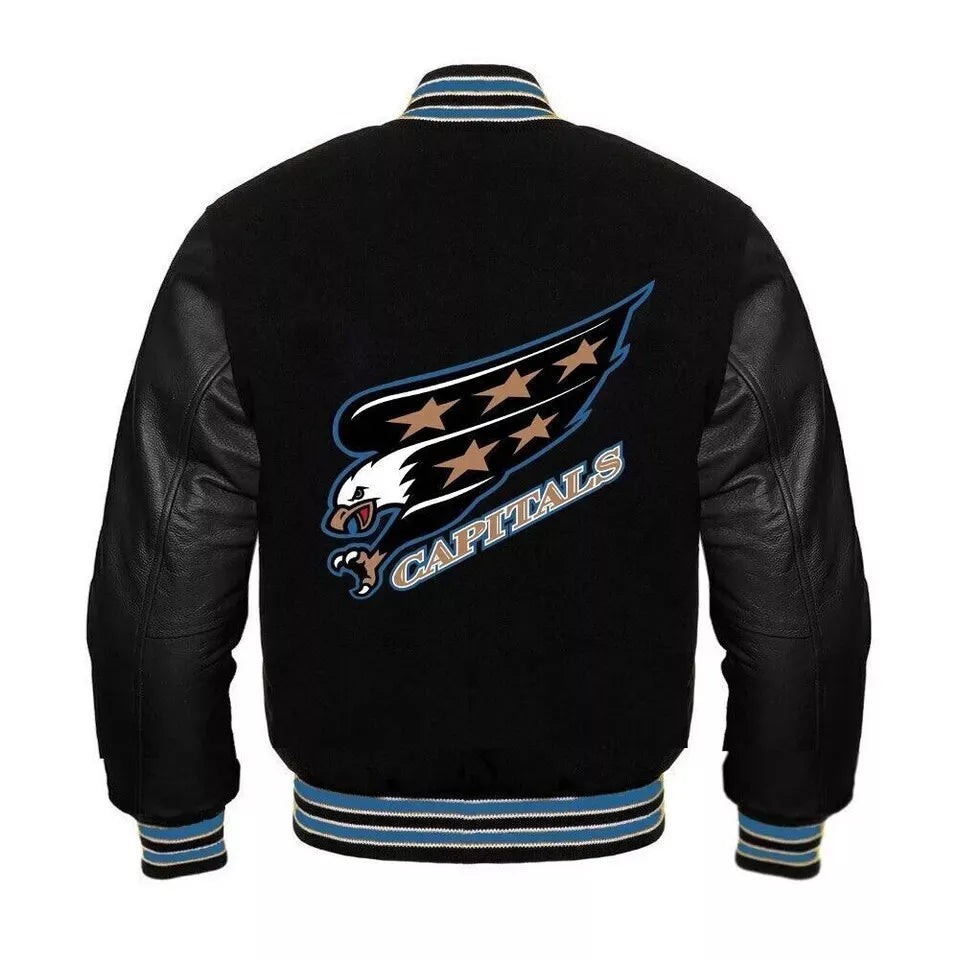 Letterman Washington Capitals Black Leather Varsity Jacket