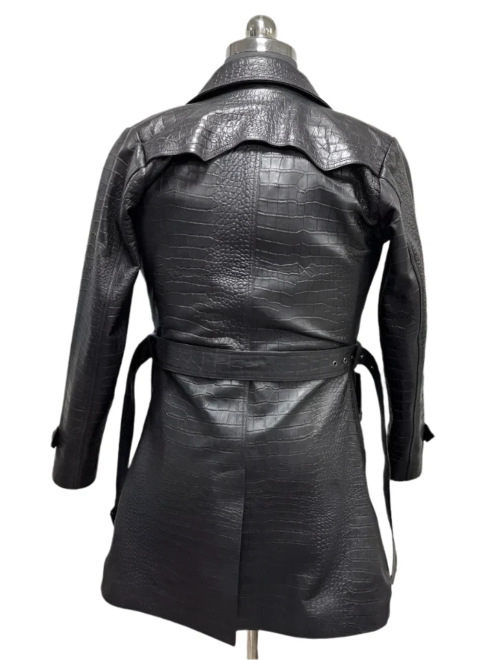 Croc-Embossed Design: Features a luxurious croc-embossed finish, adding a unique and stylish flair to the classic trench coat silhouette.