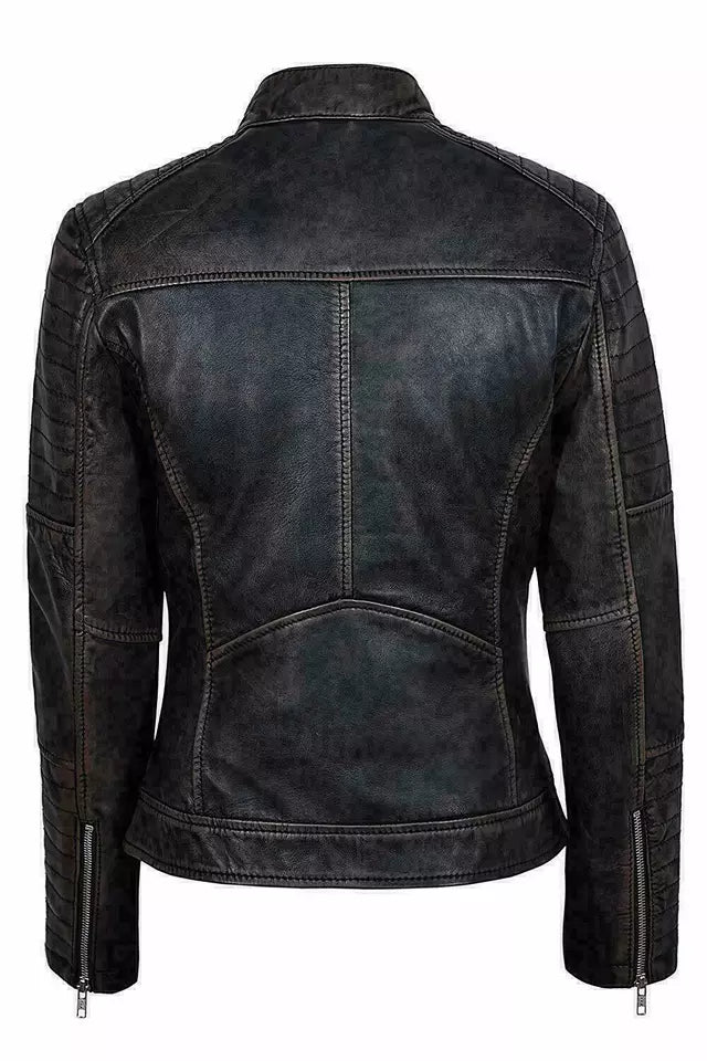 Women's Genuine Lambskin Leather Jacket Black Slim fit Biker Motorcycle Jacket
